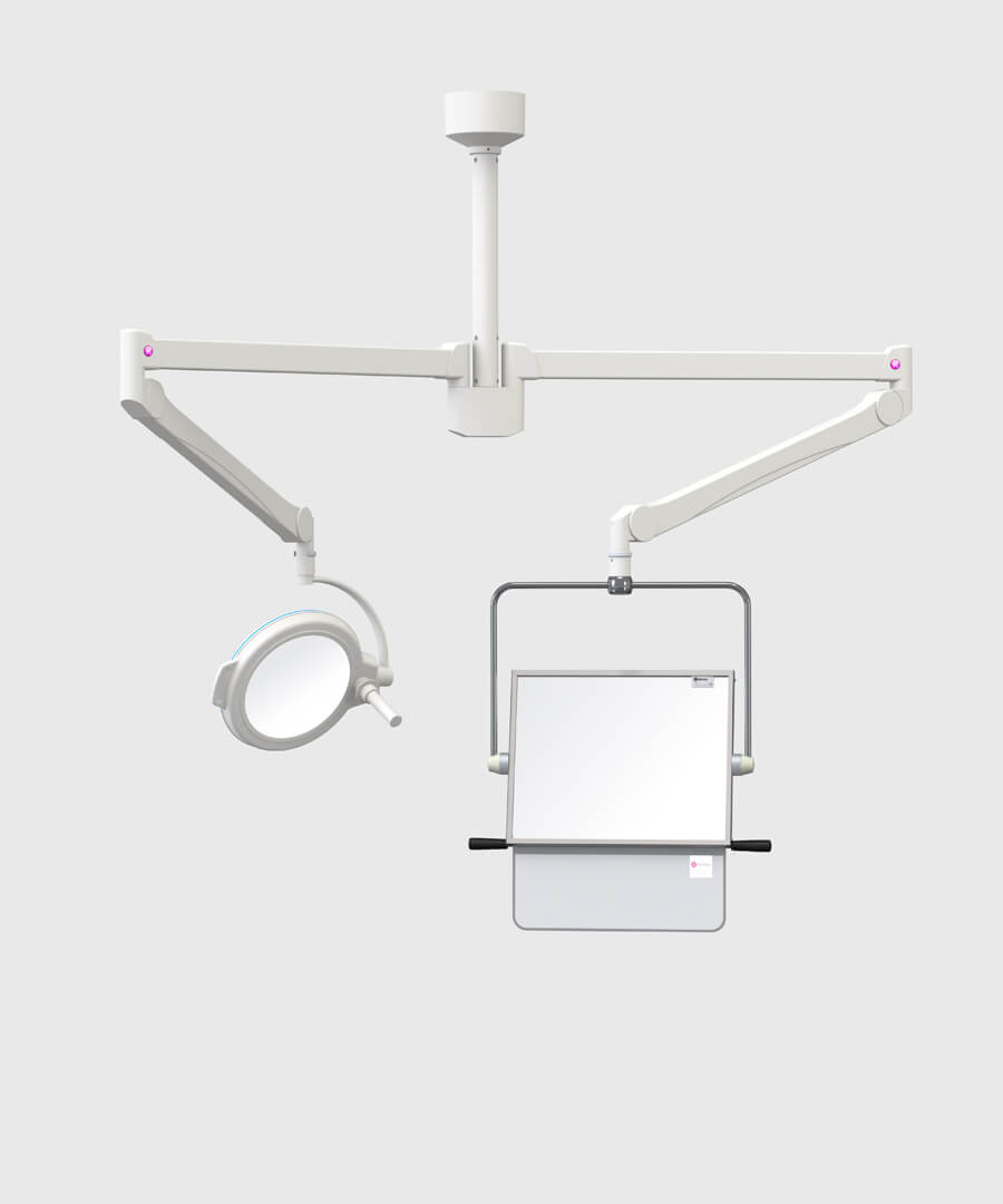Overhead shield & lamps – 250 cm ceiling track system & energy chain (cable management system), LED 150F