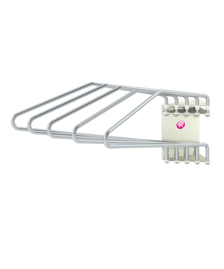 - Hangers fan out from the wall for immediate access, or fold flat when fully loaded.