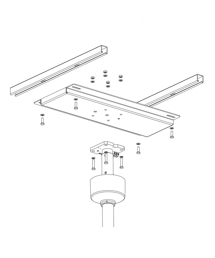 Twin pin steel ceiling column, stationary mounted on the ceiling or attached to the carriage in the Kenex ceiling track.