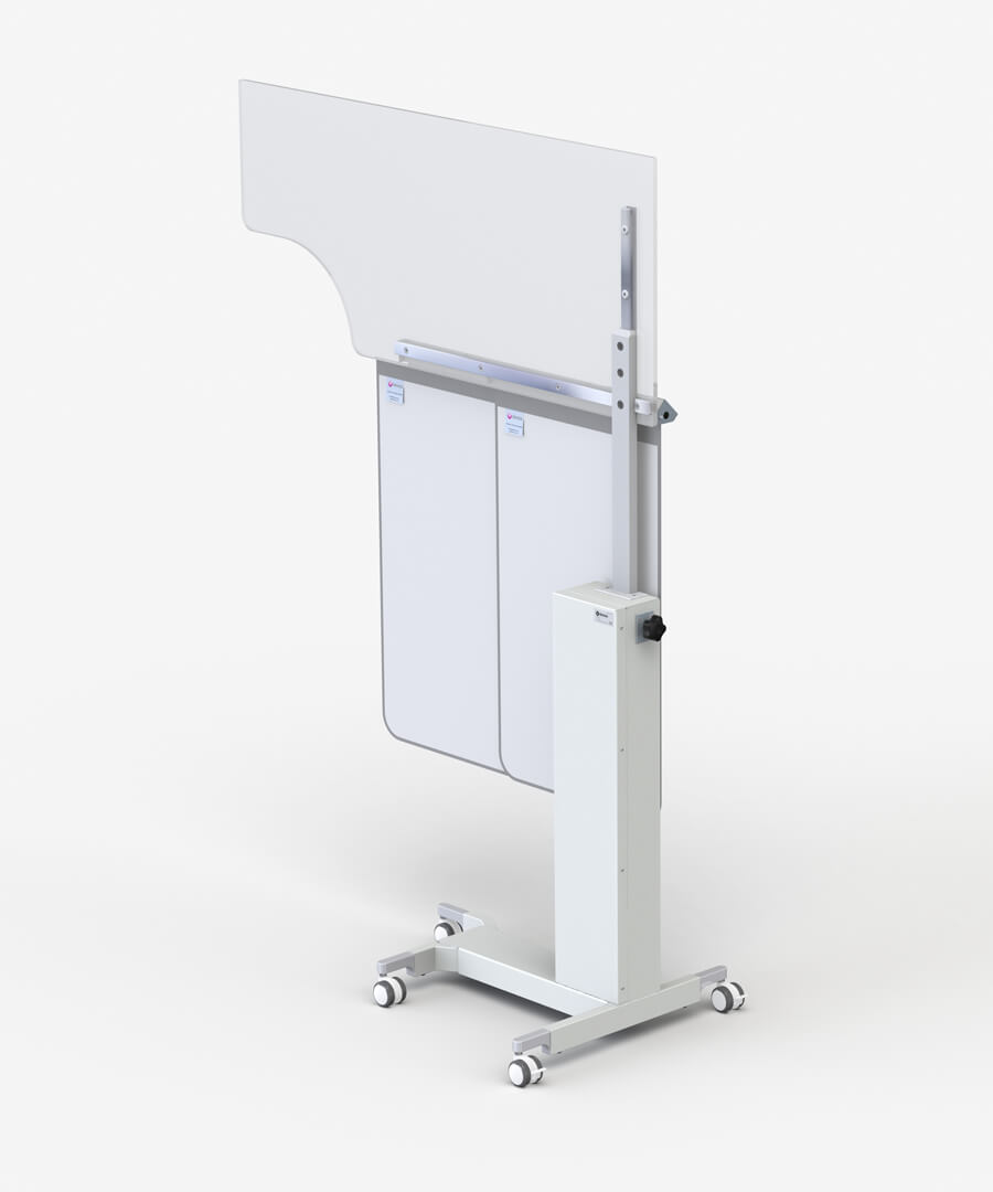 - Counterbalanced lead acrylic window which can be positioned over the patient and height adjusted to suit the table.