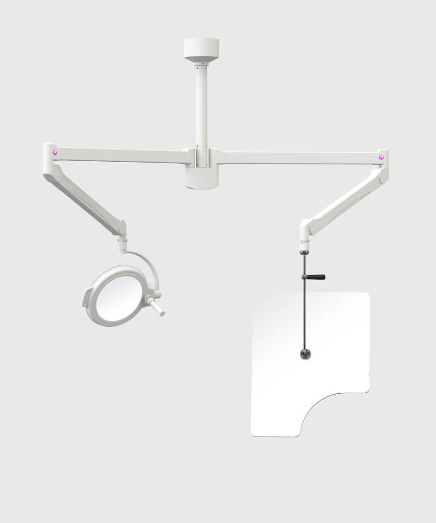 – 250 cm ceiling track & carriage, energy chain (cable management system), 80 cm ceiling column and 2 x suspension arms.