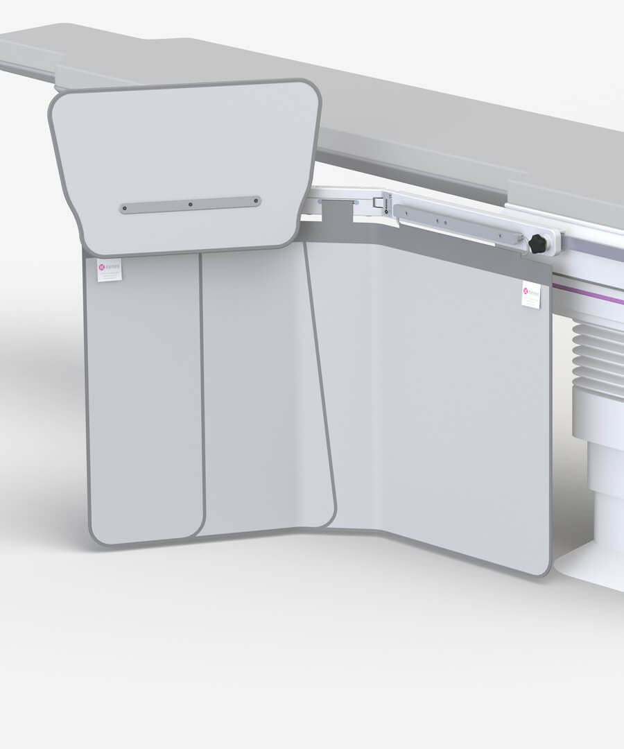 - Curtain forms around an under table x-ray tube without impeding movement.