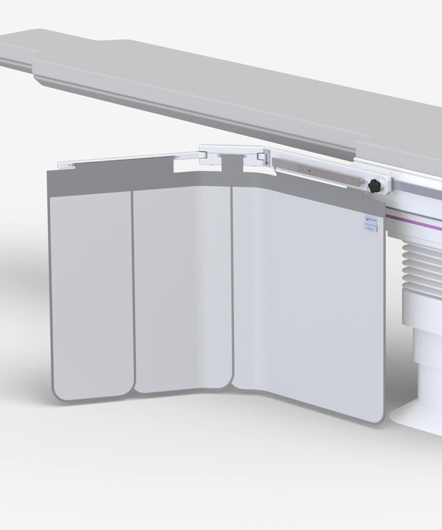 - Curtain forms around an under table x-ray tube without impeding movement.