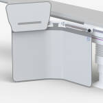 - Securing handle position allows the shield to overhang the rail end or be repositioned further along the table.