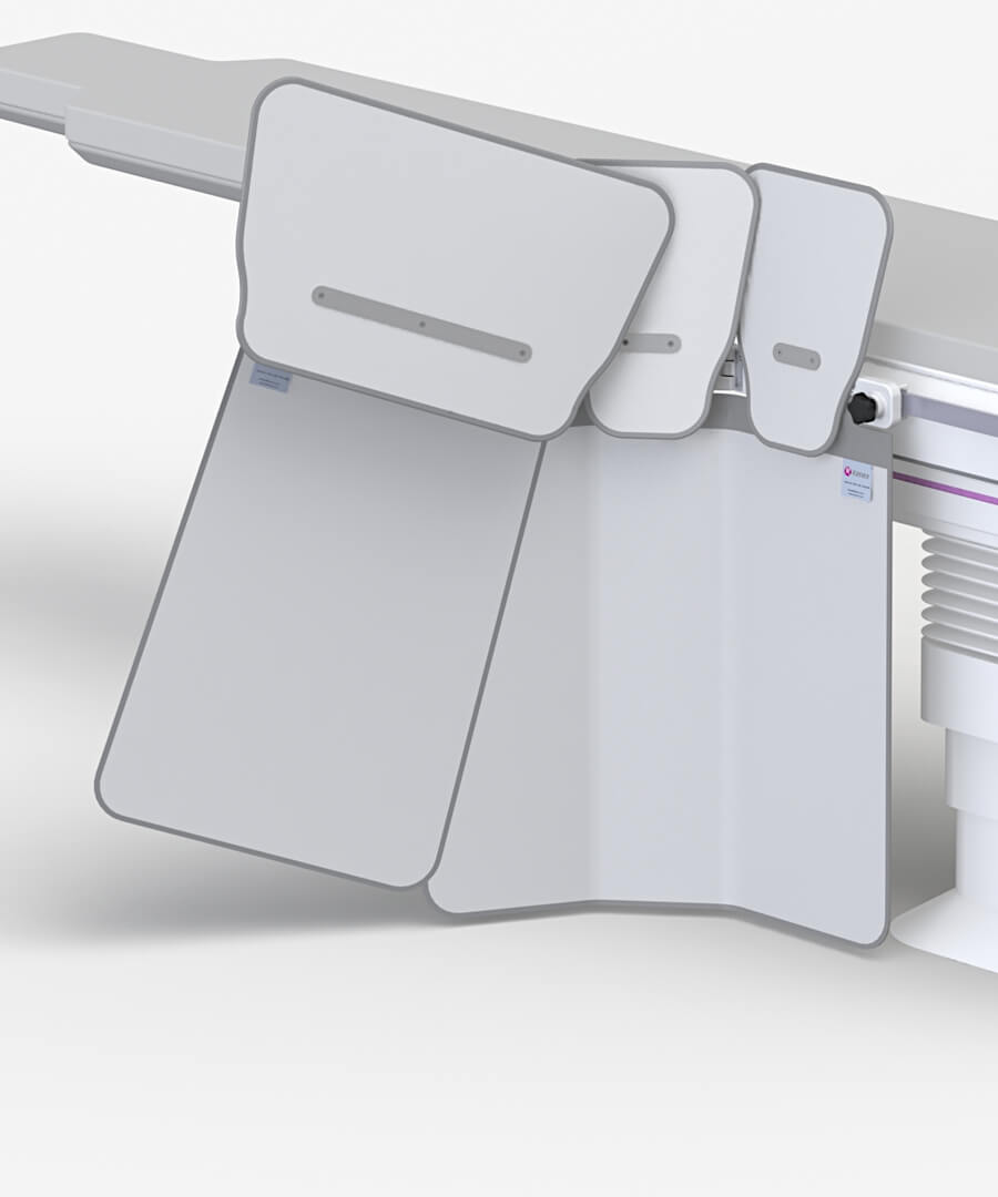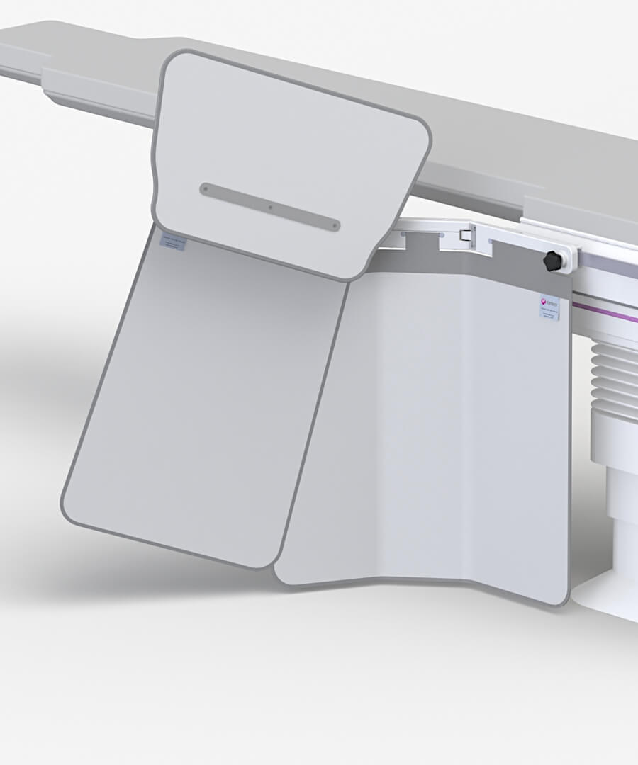• Fitted with a patented device enabling upward movement of the pivotal arm when in collision with C-arm equipment.