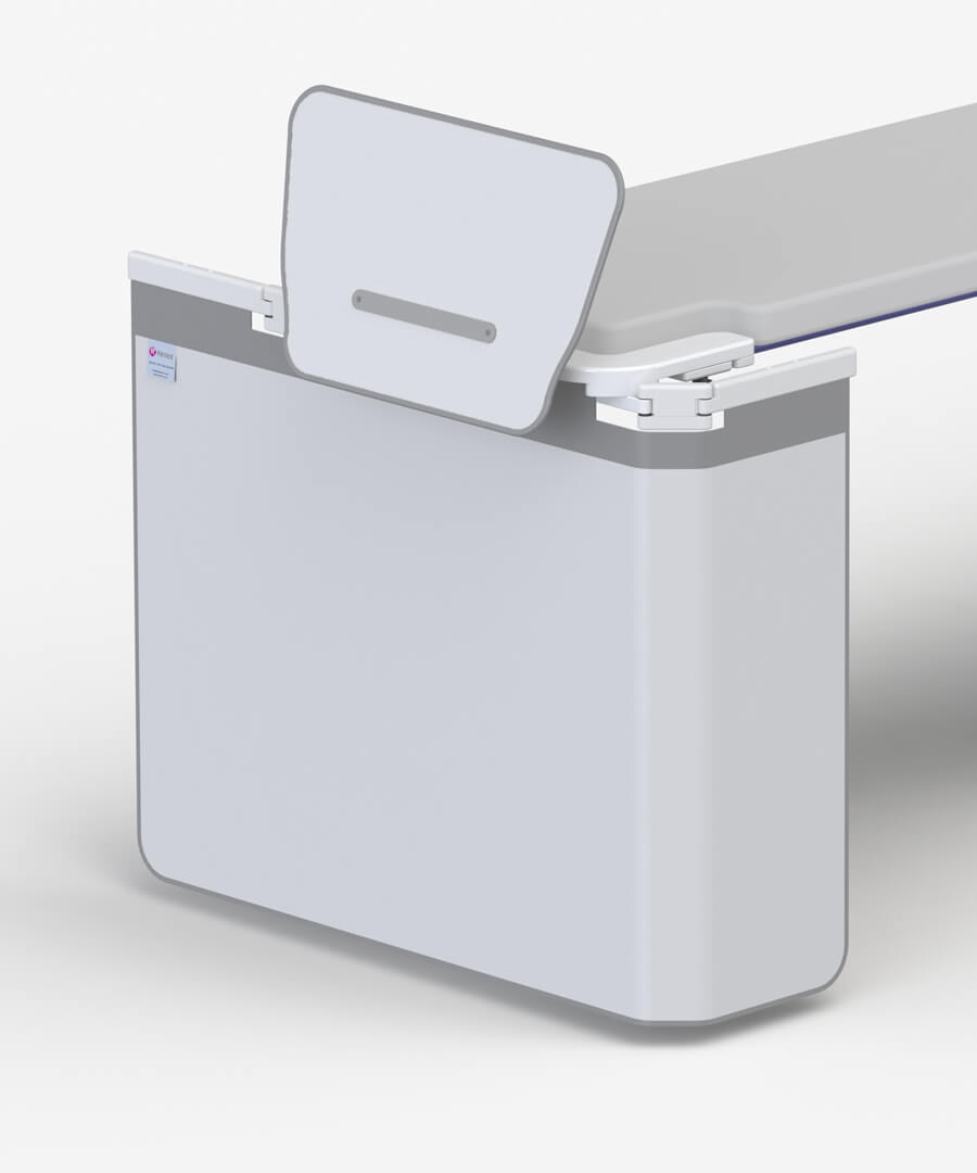 With a lead acrylic window, the shield is designed for use across the table towards the foot end.