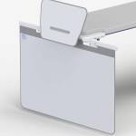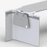 Lightweight and durable structure for an Allura AD7 table. Fixed central section and two pivotal side arms supporting a flexible curtain. Semi-flexible fold-down top shield included.