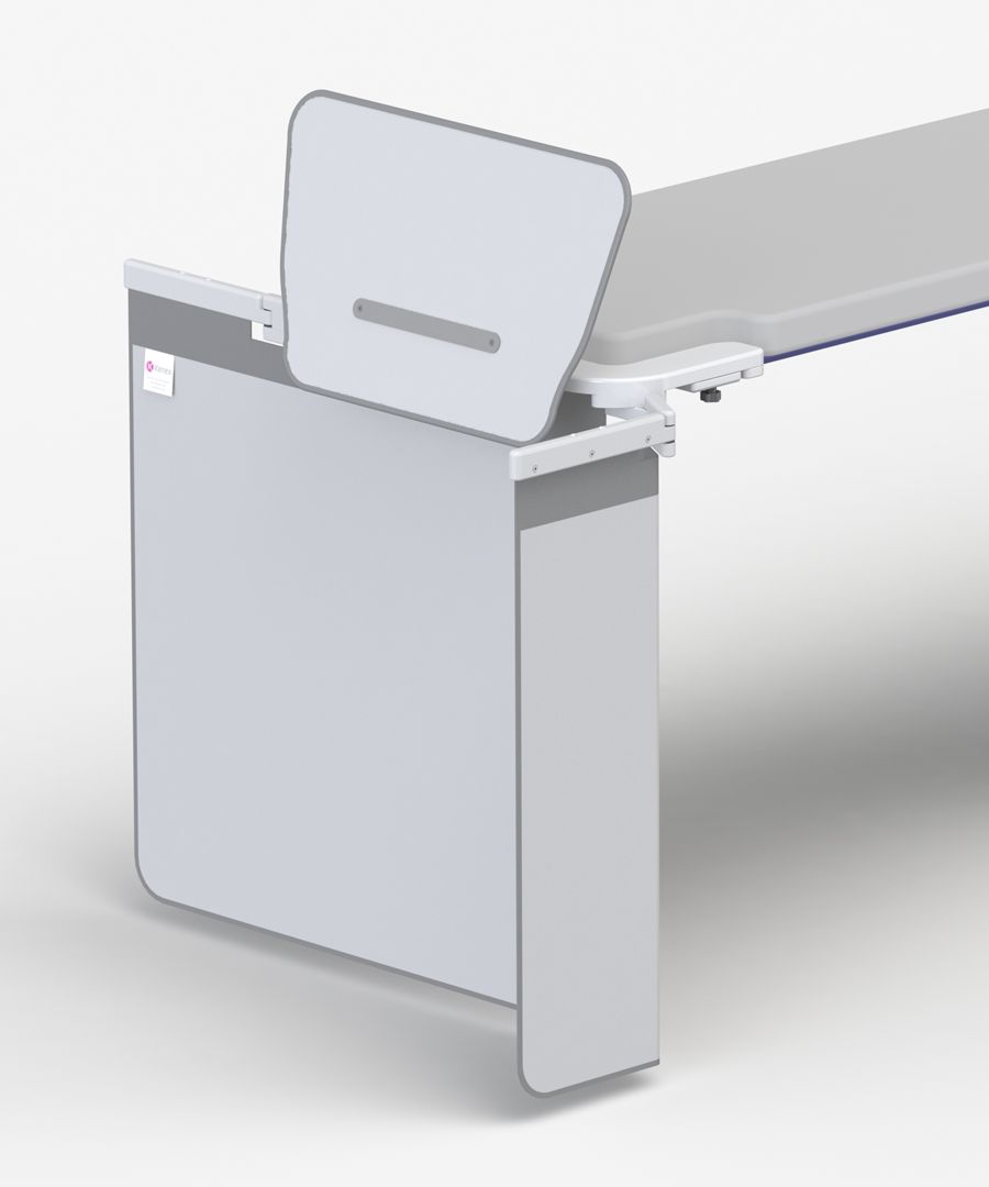 - Side arms can be formed around the user, individually extended forward along the table side, or folded neatly away according to preference.
