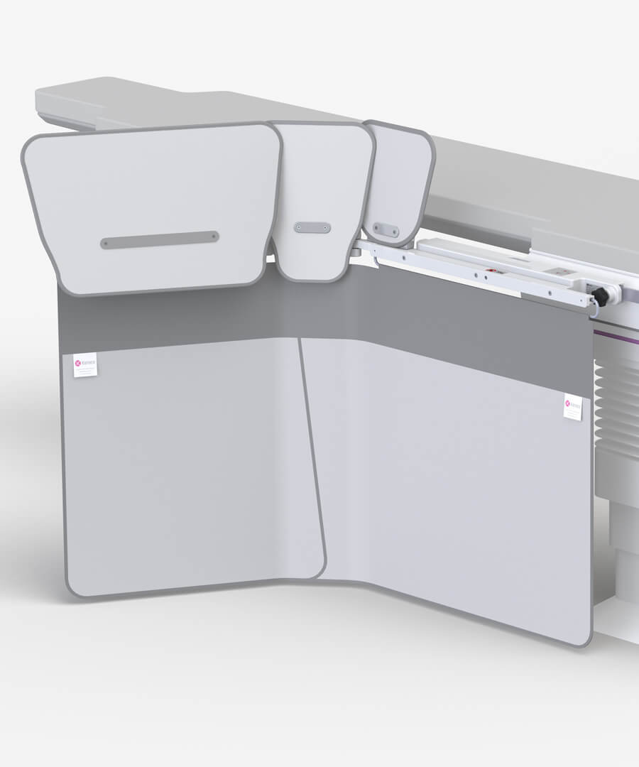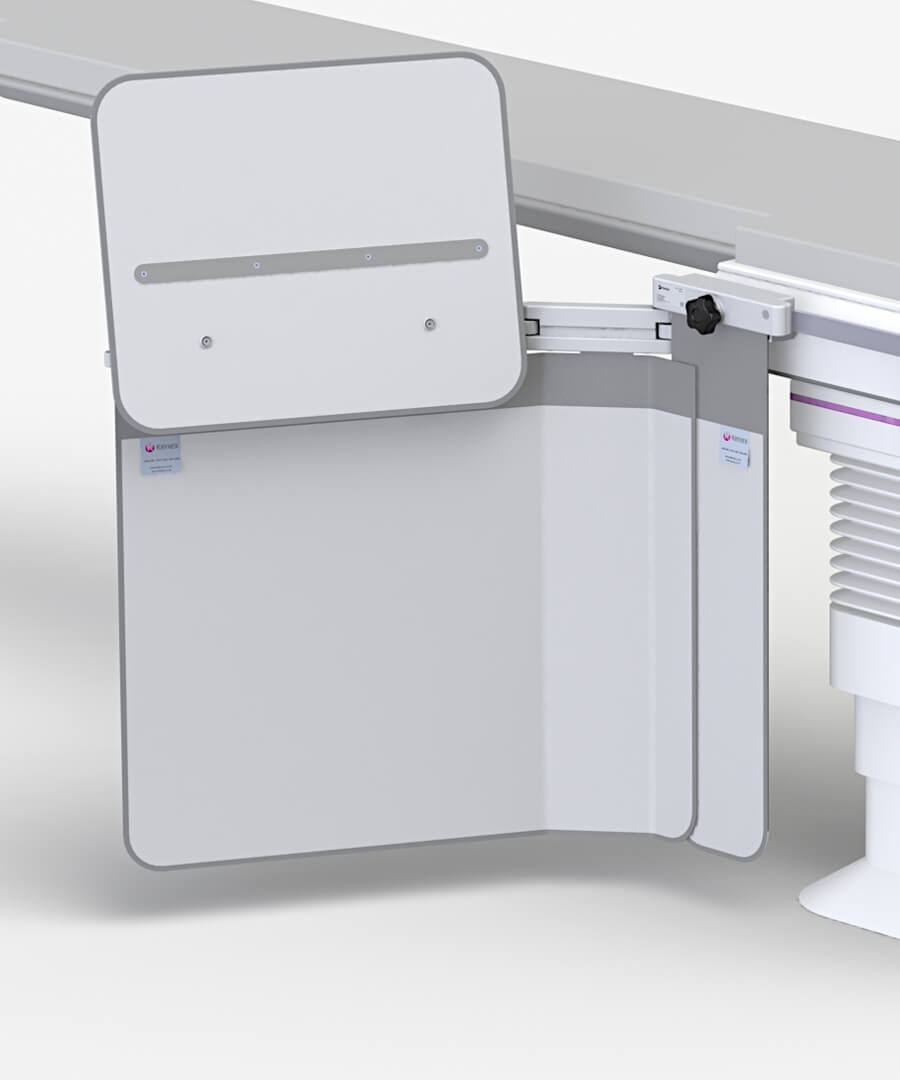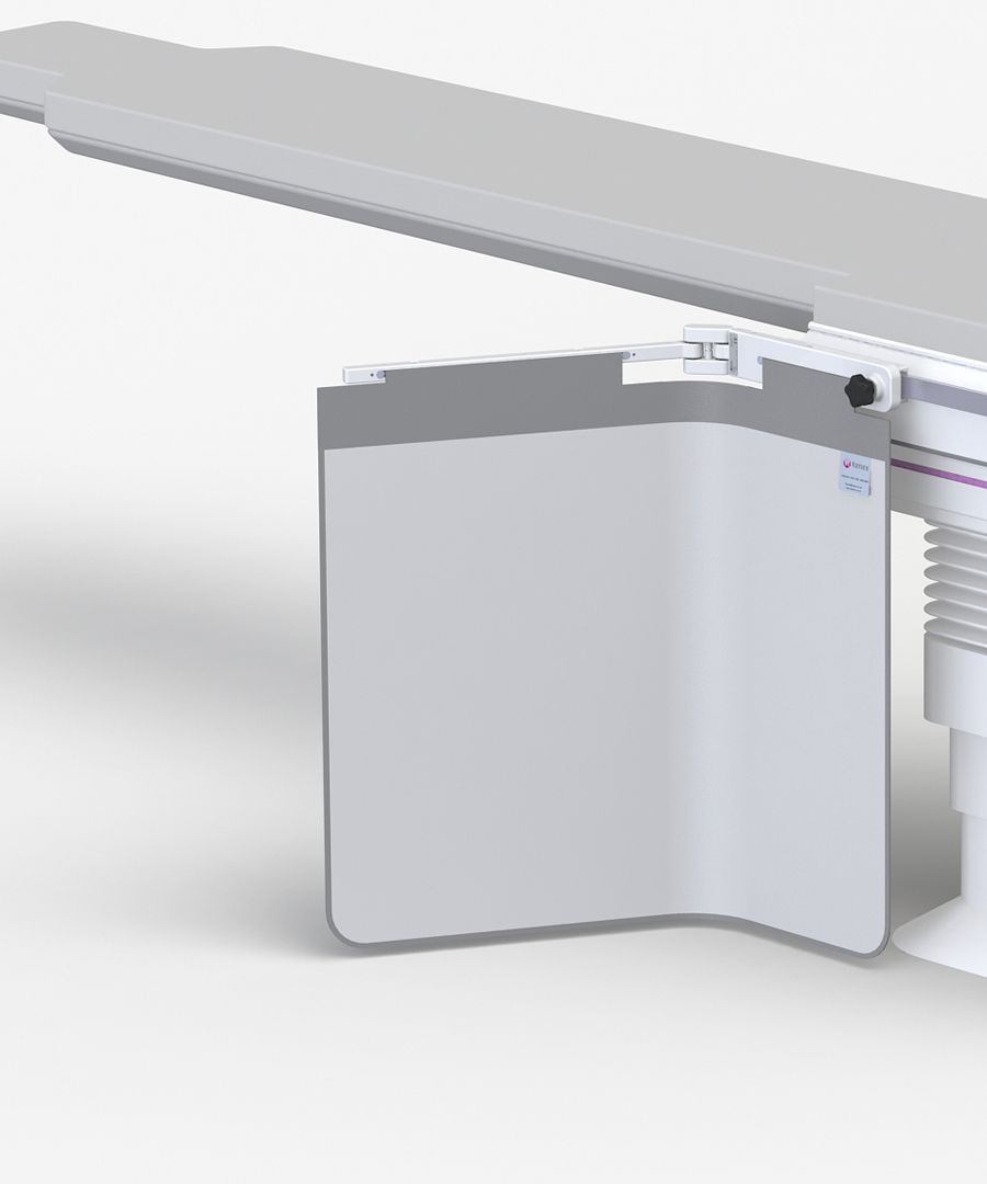 312/E-020, -021, -022Lower body table shields with a double friction joint, accessory rail and optional top shields.