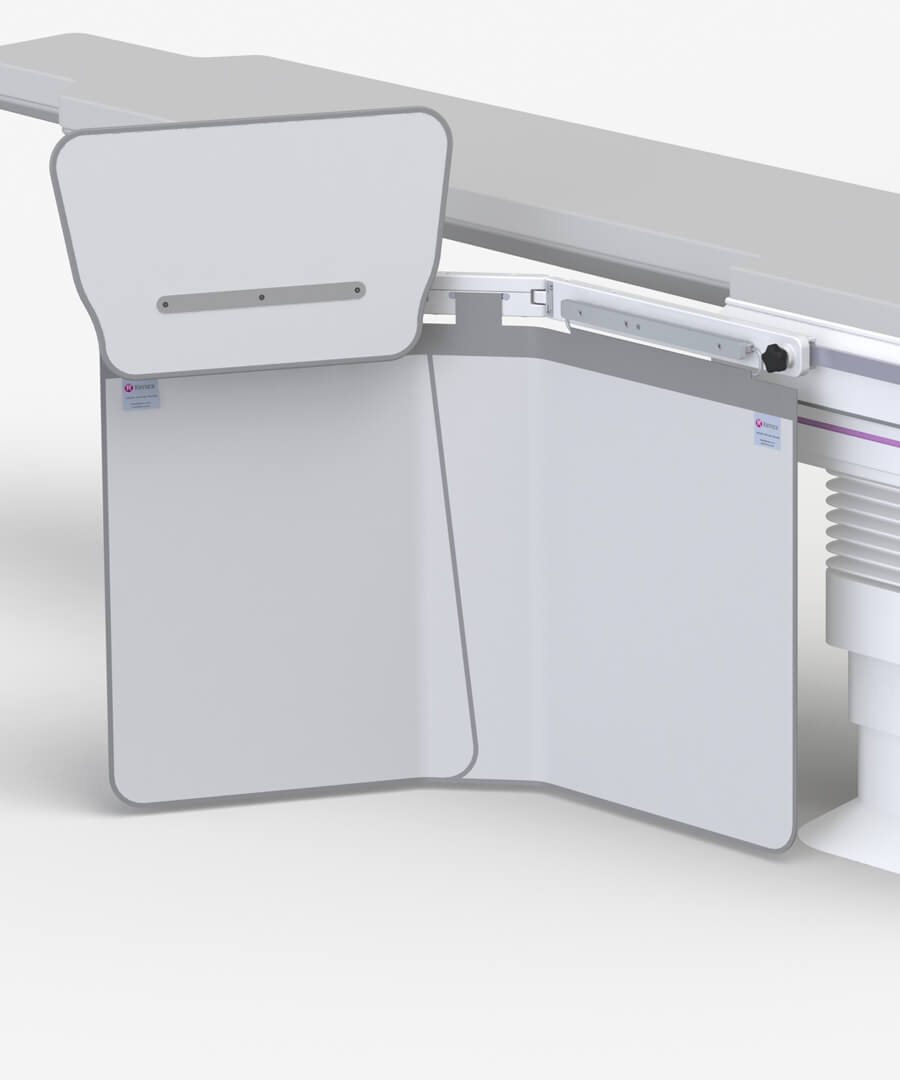 312/E-010, -011, -012Lower body table shields with a double friction joint and optional top shields.