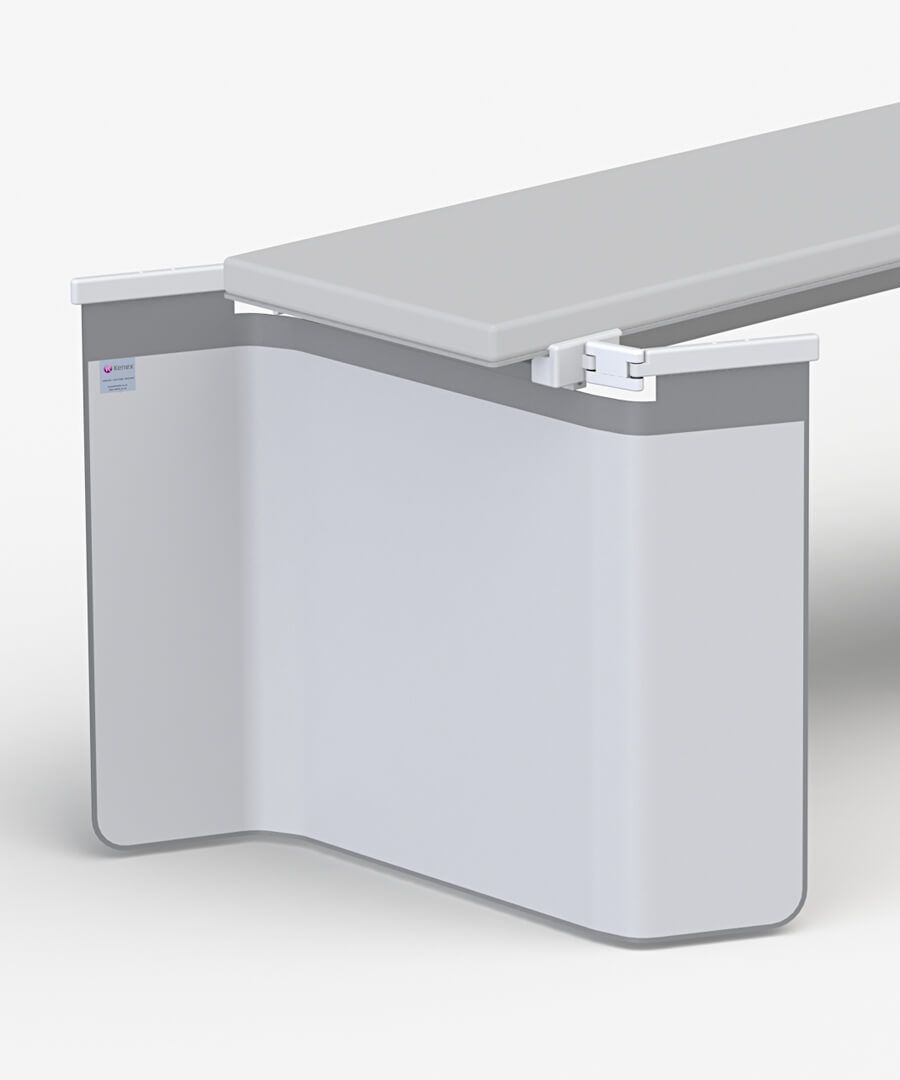 312/E-005, -006, -007Lower body table shields with a single friction pivot and optional top shields.
